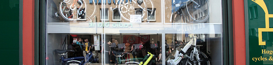 Man liebt sie, oder nicht. Das Brompton ist eben ein typisch britisches Produkt. Ausgereift, praktisch, aber in einigen Details etwas verschroben. Auf den ersten Blick unlogisch, funktioniert aber trotzdem prima. Die Falttechnik eines Bromptons sollte man lernen. Macht man es falsch, führt man einen Slapstick auf und alle haben etwas zu lachen. Macht man es dagegen richtig, belohnt einen das Brompton schnell mit extrem kleinem Packmaß in einem stabilem Paket, von dem sich nichts lösen kann. Das Brompton Zubehör ist zweckmäßig und genau auf die Benutzung des Rades für Bahn oder Bus, für Alltag oder Reisen, zugeschnitten. Ich habe normalerweise ca. 10 verschiedene Modelle von Brompton hier vorrätig (meist auch ein Titan Modell und Sondermodelle) und zeige das komplette Zubehörprogramm an den Taschen die man ans Brompton anhängt wie auch an den Taschen in die man das Brompton reinpackt. Ersatzteile sind entweder da, oder schnell besorgt ( Ausnahmen sind möglich, aber selten ). Ich werde bei Brompton zwar „nur“ als Premium Händler geführt, der einzige Unterschied zum Excellence Händler wäre aber das Brompton Shop in Shop System. Ich habe es nicht. Meine Räder stehen also nicht in dem Regal von Brompton, sondern in einem anderen. Wem das wichtig ist...